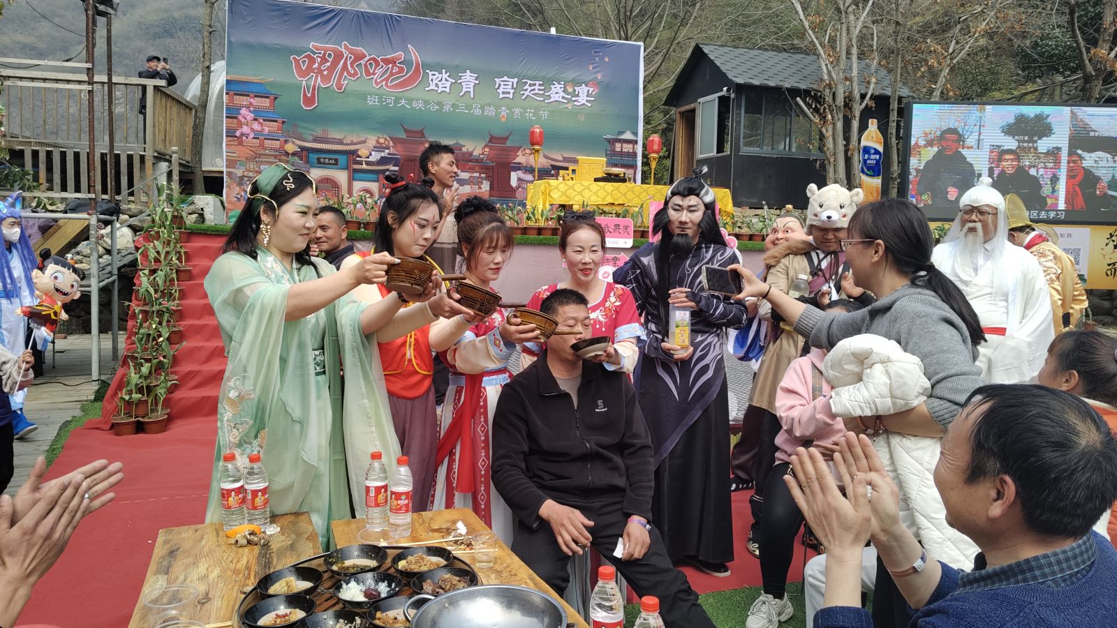 中午,大家在山谷間的農(nóng)家樂享用了地道的農(nóng)家菜,新鮮的食材和獨特的烹飪方式讓大家贊不絕口。午餐過后,大家自由活動,有的同事選擇繼續(xù)探索峽谷的奧秘,有的則選擇在河邊嬉戲玩耍,盡情享受著春日的美好時光。