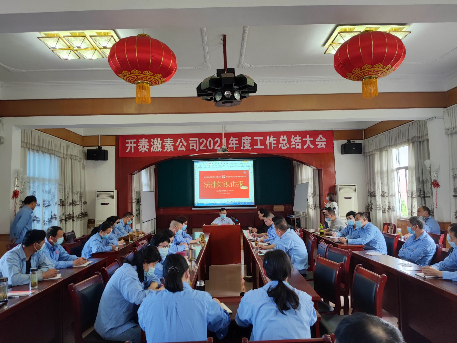 In order to further enhance employees' legal awareness, learn and get familiar with the relevant laws and regulations, Hubei Wudang Antai Pharmaceutical Co., LTD., Hubei Danjiangkou Kaitai Hormone Co., LTD., invited lawyers Rao Guoqiang and Chen Gang from Hubei Yuzhen Law Firm to give a lecture on legal knowledge to all employees on the morning of April 24th.